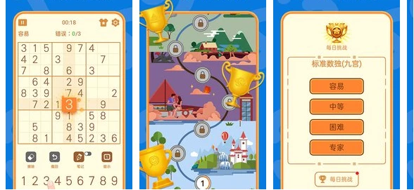 Sudoku is a digital puzzle game. Players need to fill in numbers in other spaces according to the known numbers on the disk, using rules and reasoning, so that each number can only appear once in each row, column and palace. The game is also divided into four palaces, six palaces and nine palaces. Players can freely choose the difficulty to play. The game comprehensively tests the problem maker's observation ability and reasoning ability. Although the playing method is simple, the number arrangement is ever-changing. We won't be tired of how to play. Let's do Sudoku together!